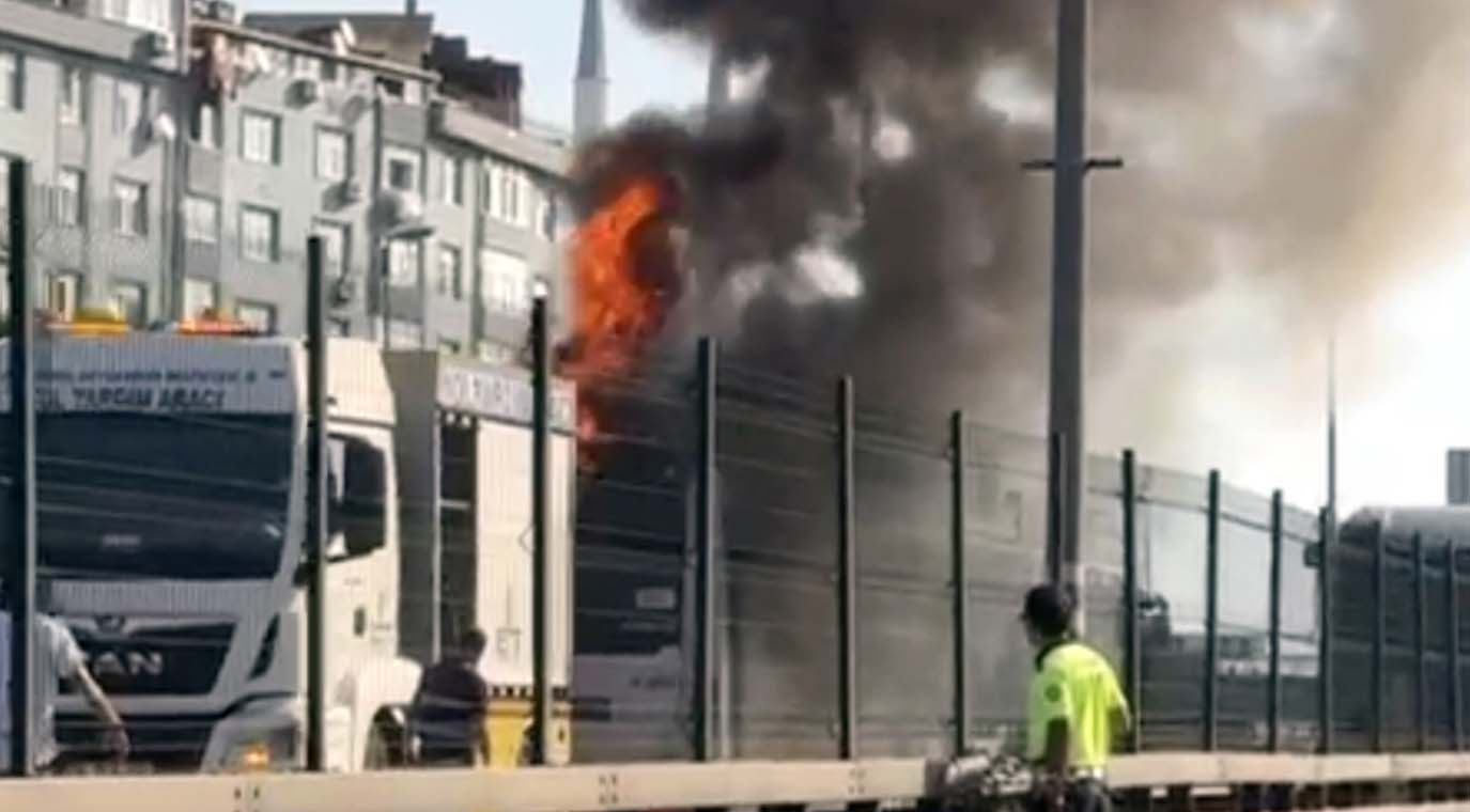 Yangın nedeniyle metrobüs yolunda seferler aksadı. Yolun kapanması nedeniyle bazı metrobüsler ilerleyemezken, uzun kuyruk oluştu.