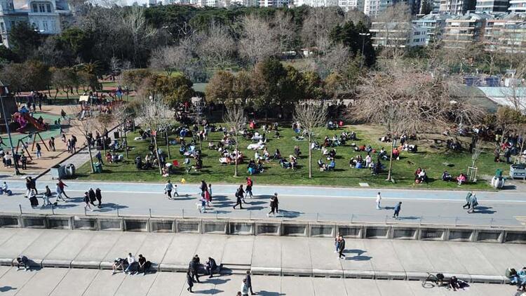 Caddebostan Sahili'ndeki yoğunluk havadan da görüntülendi.