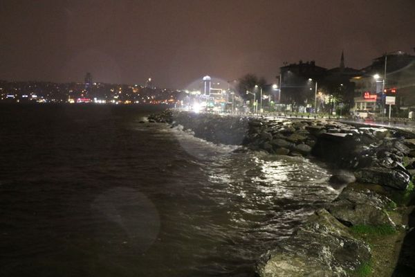 Üsküdar sahilde dalgalar dalga kıran boyunu aştı. Şiddetli fırtınanın bir süre daha etkili olacağı öğrenildi.