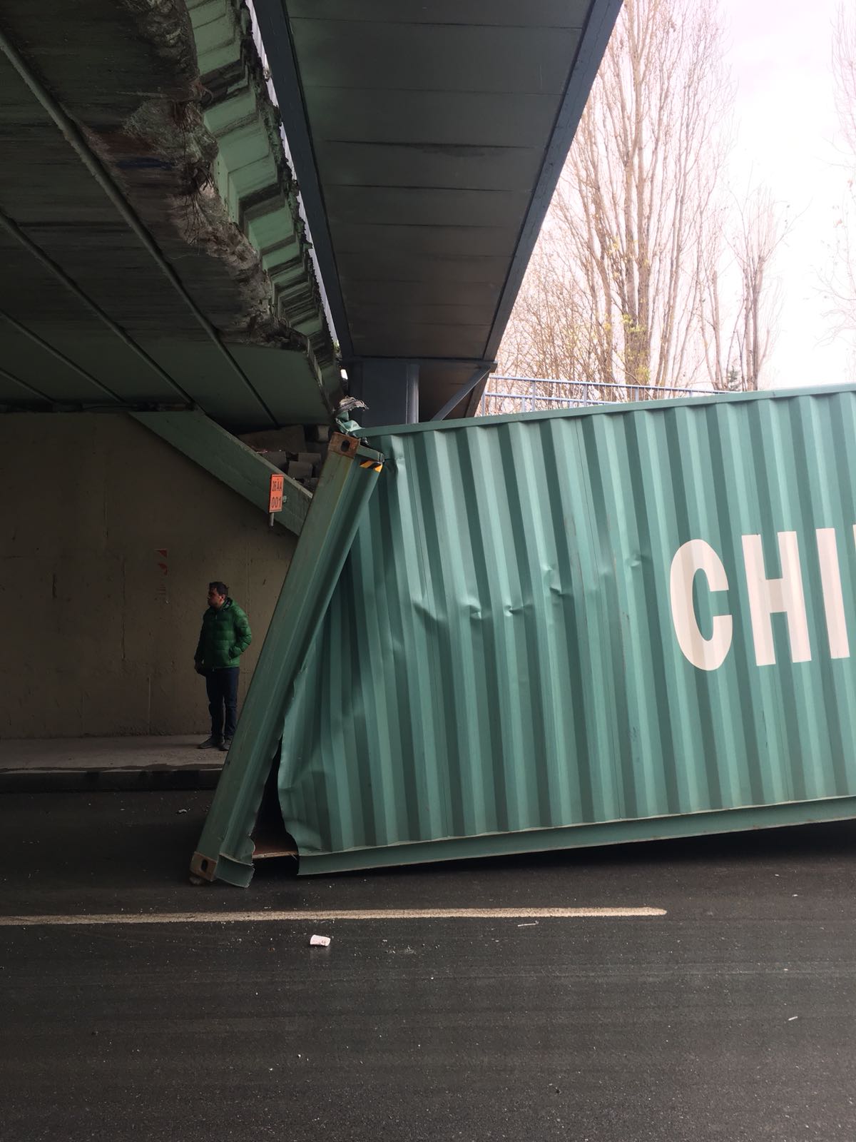 Trafik terörü devam ediyor. İstanbul Davutpaşa'da gemi konteynerı taşıyan TIR köprüdeki yükseklik tabelasını fark edemedi ve köprüye çarptı. TIR ve dorsesinde hasar oluştu. Bununla birlikte köprünün alt kısmında beton kırılmaları görüldü. Olay yerine belediyeden ekipler geldi. Konuyla ilgili soruşturma devam ediyor.