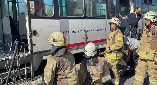 Topkapı'dan Mescid-i Selam yönüne seyir halindeki tramvayın arka kısmında henüz belirlenemeyen nedenle yangın çıktı.