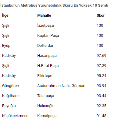 Satın almayı düşündüğünüz evin, yaşadığınız ilçenin ya da semtin en yakın metrobüs durağına ve raylı sistemler durağına yürünebilirlik skorunu biliyor musunuz?