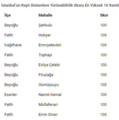 REIDIN Yürünebilirlik Skoru -Raylı Sistem Durağı ise İstanbul’daki mahallelerin metro, tramvay, teleferik duraklarına belirlenen mesafe sınırlarında yürünebilirlik derecelerini mercek altına alıyor.