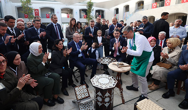İstanbul İl Müftüsü Emrullah Tuncel'in dua etmesinin ardından Cumhurbaşkanı Erdoğan ve beraberindekiler sahnede açılış kurdelesi kesti.
