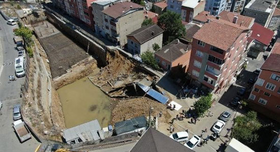 Sarıyer'de inşaat alanının yanındaki yolda sabah saatlerinde çökme meydana geldi. İstinat duvarının bir bölümü inşaat alanına doğru çökmesi nedeniyle çevredeki binalarda büyük korku yaşandı. Deprem oluyor zanneden mahalle sakinleri kendilerini dışarı attı. Yetkililerin inşaat alanındaki incelemeleri sürüyor. İnşaat alanı ve çöken bölüm havadan görüntülendi.
