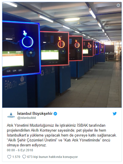 Belediyenin iştiraklerinden olan İSBAK tarafından yapılan otomatlara pet şişe atanlar karşılığında İstanbulkart'a yükleme yapacak.