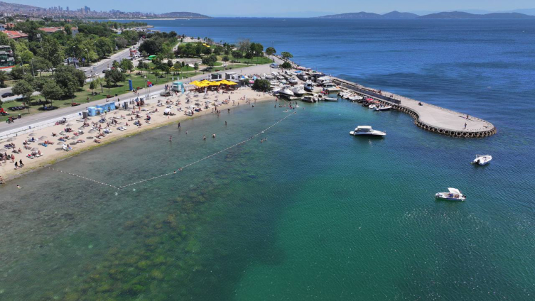 Sıcaktan bunalan bazı vatandaşlar, Caddebostan Sahili'nde yüzdü.