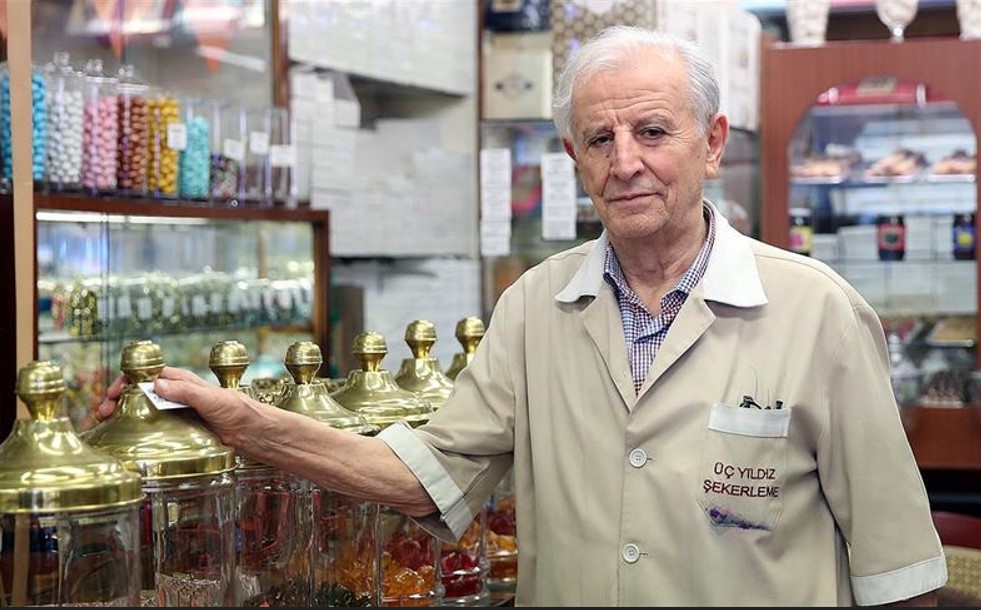 - Her şekerci dükkanının kendine has imalatı vardır. Fakat bütün bu imalatın esası şekerlemedir. Bunu da müşteriye değişik türde ikram etmemizdir. Bizim kendimize has ürettiğimiz özellikle sakızlı lokumumuz, zannediyorum İstanbul'da çok tutulur, çok sevilir. Bu arada badem ezmemiz de aynı şekildedir ki bunu söylemekten de ben şahsen gurur duyuyorum. Bu ürünümüzün bu kadar güzel olmasına sebep oğlum Altuğ'dur. Onun devamlı şekeri azaltarak bademi aynı tutarak yapmış olduğu badem ezmesi, zannediyorum lezzeti müşteri tarafından da tutulduğundan her geçen gün satışını arttırıyor. Oğlumu da bu konuda tebrik ediyorum.