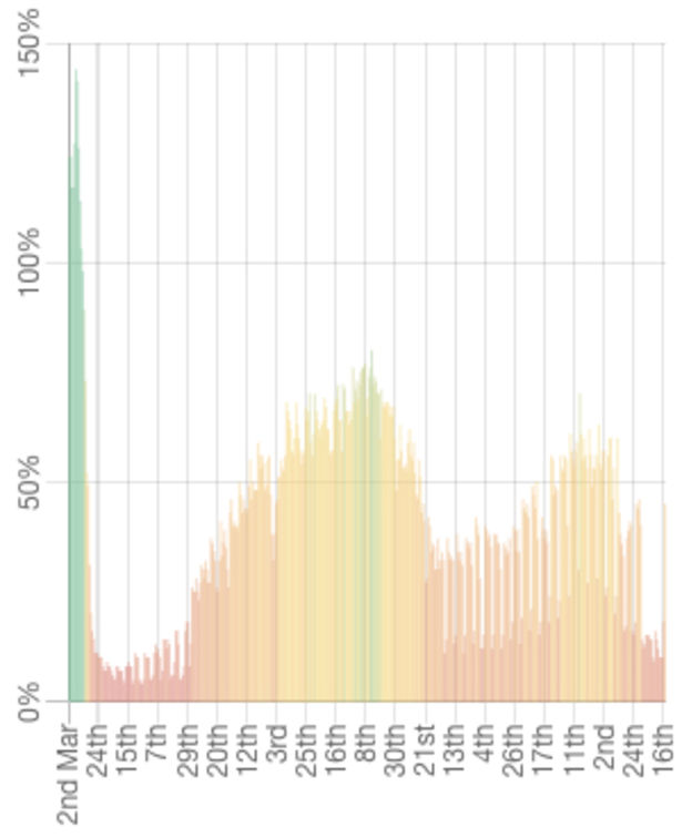 Dünya genelinde İstanbul dahil büyükşehirde faaliyet gösteren toplu taşıma uygulaması ve haritalama hizmeti CityMapper’ın korona virüs ile birlikte yayınlamaya başladığı Hareketlilik Endeksi’ndeki (Mobility Index) İstanbul’un güncel verilerine göz attık.