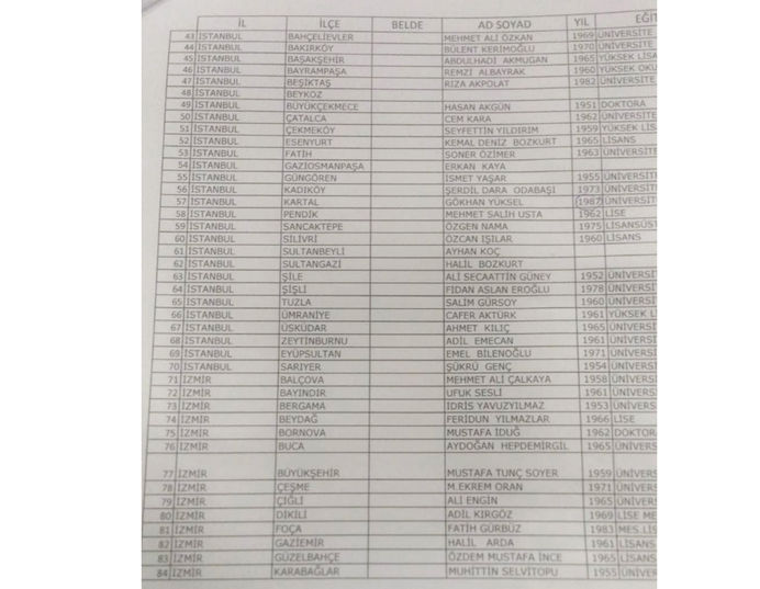İddiaya göre, Kılıçdaroğlu'nun MYK'nın onayına sunarak onaylattığı liste ise şöyle: