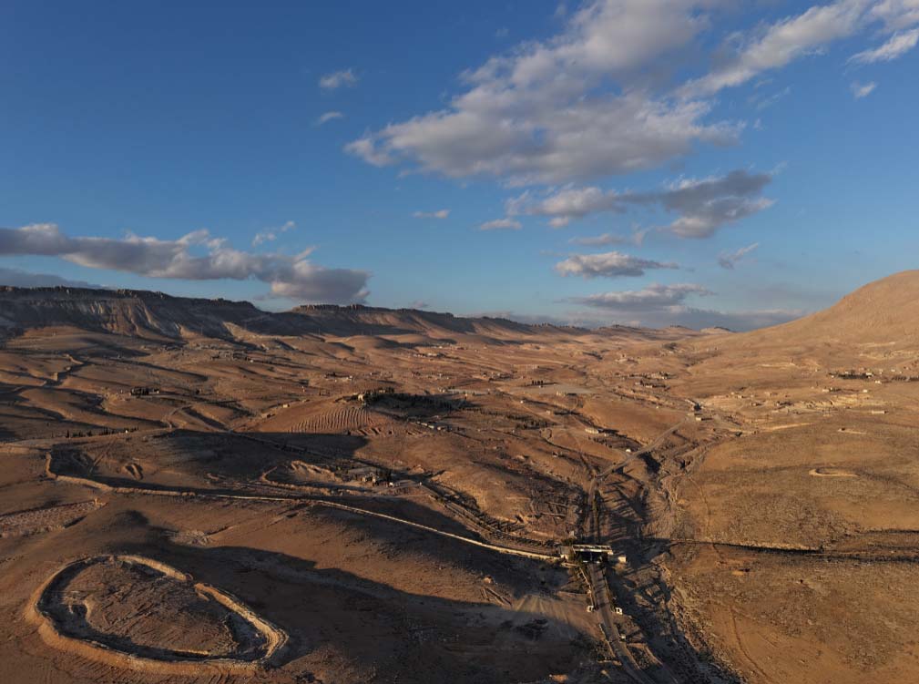 Havadan çekilen görüntülerde tesisin yüksek tepede kurulu olduğu ve çevresinde yüksek toprak yığınlarının bulunduğu görüldü.
