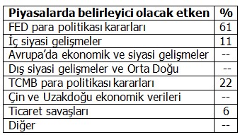 Yılın ilk Fon Yöneticileri Beklenti Anketi’ne göre, ilk çeyrek dönemde piyasalarda en önemli yön belirleyici unsur olarak ABD Merkez Bankası’nın (FED) para politikasına ilişkin kararlar öne çıktı. Anket katılımcılarının %61’i bu yönde beklentisini belirtti.