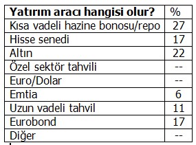 İlk çeyrek için belirgin bir yatırım aracının öne çıkmadığı gözlenen anket sonuçlarına göre, katılımcıların %27’si kısa vadeli hazine bonosu/repo ve %22’si altın olarak tercihini belirtti. 2018’in favori yatırım aracı hisse senedinin ise az sayıda katılımcı tarafından işaretlendiği dikkat çekti.