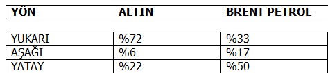 Petrolde ise katılımcıların yarısı yatay seyir beklentisinde olduklarını belirttiler. Yukarı yönde hareket bekleyenlerin oranı yüzde 33 oldu.