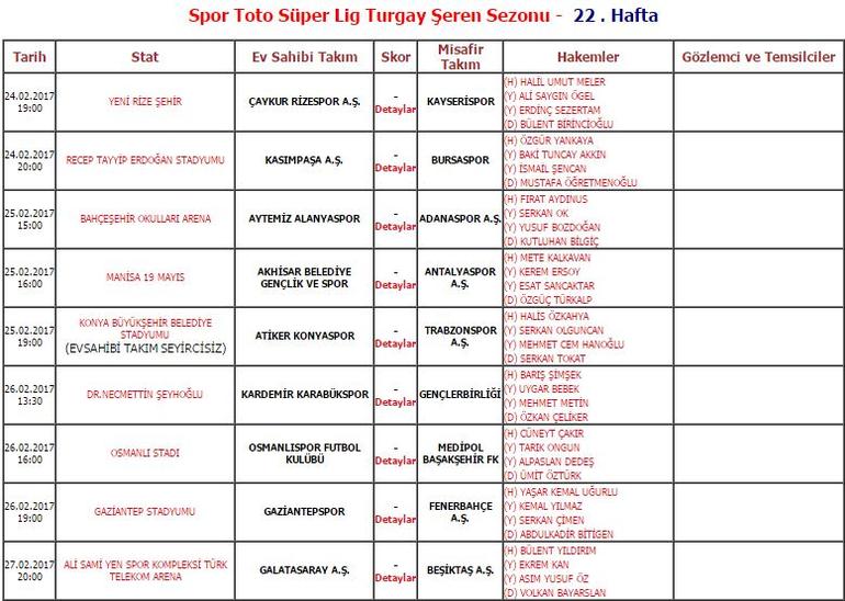 İşte Spor Toto Süper Lig'de 22. haftanın hakemleri;