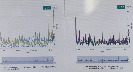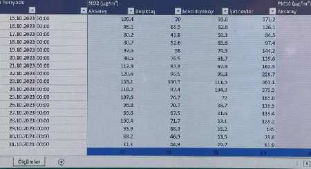 İstanbul'un ilçelerindeki trafiğe bağlı hava kirliliğini hazırladığı tablolar üzerinden anlatan Kuzu, "Burada çeşitli ilçelerdeki hava kalitesi ölçüm istasyonlarının sonuçlarını görüyoruz. Bunlar iyi, orta, hassas ve sağlıksız gibi çeşitli şekilde ifade ediliyor. Burası kentsel bir bölge mi? Ya da trafik kaynaklı bölge mi? Sanayi bölgesi mi? Onu görebiliyoruz. Zaten grafikleri incelediğimiz zaman Beşiktaş ,Mecidiyeköy, Şirinevler, Göztepe gibi çeşitli istasyonların burada olduğunu görebiliyoruz. Trafik kaynaklı emisyonların olduğu istasyonlar burada seçili. Burada görebileceğimiz ortalama değerler. Azot oksitler için 26 ile 77 arasında değişen değerleri görüyoruz. Trafiğin yoğun olduğu bölgelerde hava kirliliğinin biraz daha yoğun olduğunu görebiliyoruz. Fakat trafiğin etkin olduğu bölgeler içerisinde Beşiktaş'ın daha temiz olduğunu sonuçlar bize söylüyor" dedi.
