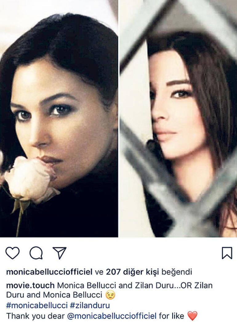 Monica Bellucci, Zilan Duru'nun paylaşımını beğendi. Duru’nun yurt dışında çekilecek bir sinema filminde rol alacağı da öğrenildi.