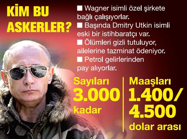 Rusya, Suriye savaşında sahada ağırlığını artırmaya karar verince paralı askerler bir kez daha ortaya çıktı. Batı basınındaki iddialara göre aralarında Wagner’in de olduğu pek çok Rus şirket -ki hatta birinin merkezi Hong Kong’daydı- ülkeye savaşçı gönderdi. Son olarak Deyrizor’daki çatışmadan sonra gözler üzerine çevrildi. Rus hatta ABD’li yetkililer “paralı asker” lafını ağzına dahi almadı. Ancak önce Amerikan basını, sonra da Kremlin yanlısı yayın kuruluşları ölen savaşçılardan “Wagner güçleri” olarak bahsetti. Ukrayna’daki ayrılıkçı grupların başındaki eski Rus Albay Igor Strelkov da sosyal medya hesabından “Bölgede Wagner’in iki birliği vardı, birinci birlik tamamen yok oldu, ikincisi de paramparça...” açıklamasını yaptı.
