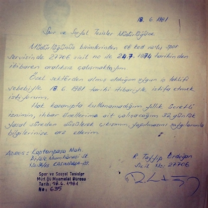 Devlet Arşivleri Genel Müdürlüğü'ne devredilen İETT arşivlerinden Cumhurbaşkanı Erdoğan'ın istifa dilekçesi çıktı