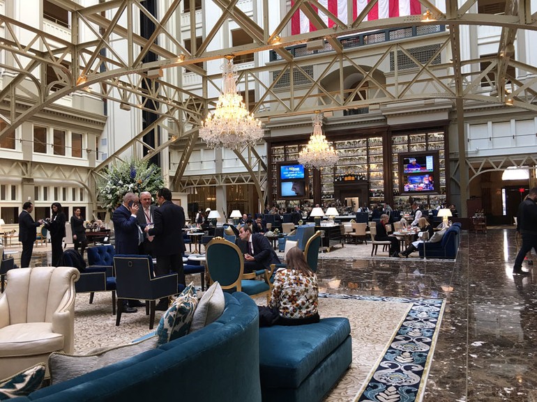ABD’nin yeni Başkanı Donald Trump’ın sahibi olduğu Washington D.C’deki TrumpInternational Oteli, yemin töreni öncesinde kentin en hareketli noktalarından biriydi. Trump’ın aile çevresinin ve yakın dostlarının kamp kurduğu otele, ‘konukların özel hayatına saygı’ gerekçesiyle hafta boyunca basın mensubu alınmadı. Hürriyet Washington Temsilcisi Cansu Çamlıbel’in girmeyi başardığı Trump International’ın bir anlamda kozmik odası kişiye tören ve balo davetiyelerinin dağıtıldığı ‘lounge’dı. ‘Aile ve dostlarla’ sınırlı listede ismi bulunmayan kimse salona alınmadı.