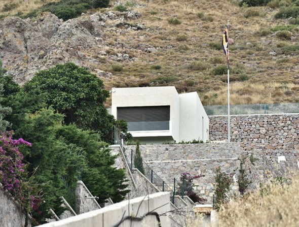Kale gibi yüksek duvarlarla çevrili villanın girişine Fenerbahçe’nin bayrağını astırdı.