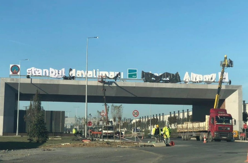 Sosyal medyada yayılan fotoğraflarda yeni havalimanın tabelası asılıyor. Tabelada "İstanbul Havaalanı, İstanbul Airport" yazıyor. Medyafaresi