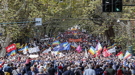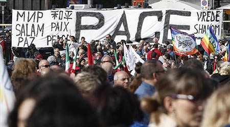 Ülkenin önde gelen işçi sendikaları, farklı kesimlerden sivil toplum kuruluşları ve Katolik kuruluşların organizasyonuyla Roma'da "Barış için Avrupa" sloganıyla büyük yürüyüş ve miting düzenlendi.