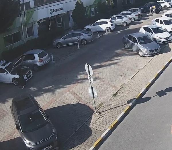 Güvenlik kamera görüntülerini inceleyen Hırsızlık Büro Amirliği ekipleri, E.E.'nin otomobilin patlayan lastiğini değiştirmeye çalıştığı sırada, sol arka kapıya yaklaşan bir kişinin içinde para bulunan çantayı alarak uzaklaştığı, daha sonra kendisini bekleyen suç ortağının kullandığını otomobile bindiğini gördü.