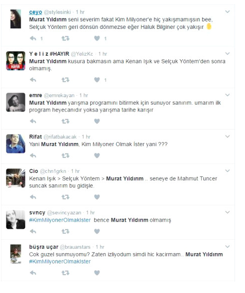 Kenan Işık'la efsaneleşen 'Kim Milyoner Olmak İster'in sunuculuğunu Selçuk Yöntem'den devralan Murat Yıldırım ilk performansıyla seyircinin karşısına çıktı. Ancak Murat Yıldırım'ın ilk performansı performansı sosyal medyada büyük eleştiri konusu oldu.