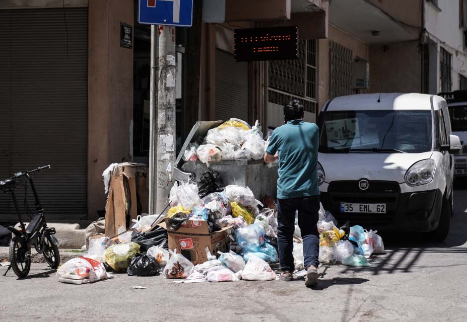 İzmir'in Karabağlar ilçesinde Genel-İş Sendikası üyesi işçiler, maaşlarının bir bölümünün ödenmediği gerekçesiyle salı günü iş bırakma eylemi başlattı. Belediye işçilerinin iş bırakma eylemi nedeniyle sokaklarda çöp yığınları oluştu.