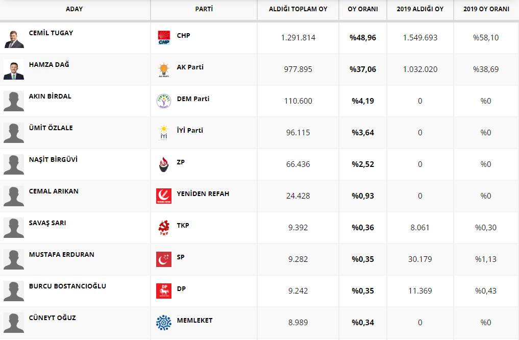 İZMİR BÜYÜKŞEHİR BELEDİYESİ ADAYLARI VE ANLIK SONUÇLAR