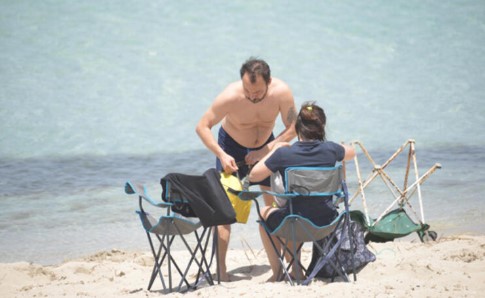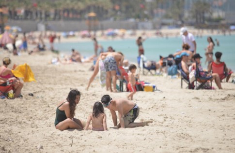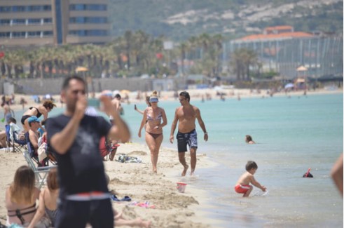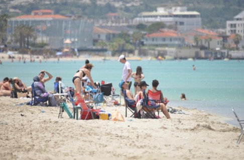 Çeşme ilçesindeki Ilıca Plajı'na gelen vatandaşlar, şemsiyelerini kurup denize girdi, çocuklarıyla oyunlar oynadı.