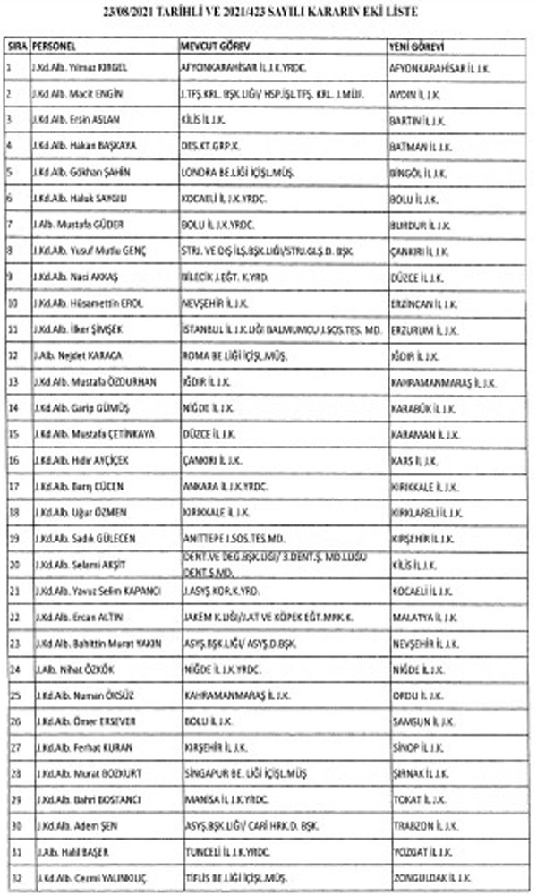 ALBAYLARLA İLGİLİ ATAMA LİSTESİ