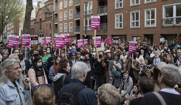 Düzensiz göçmenlerin İngiltere'ye gelişini önleme maksadıyla Boris Johnson hükümetinin önerdiği göçmenleri Ruanda'ya gönderme planı STK ve muhalefetten tepki görürken büyük bir kalabalık tarafından protesto edildi.