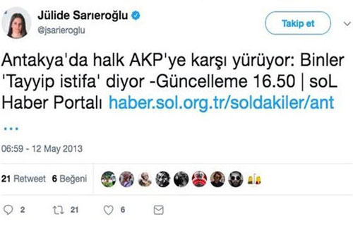 Yeni bakan Jülide Sarıeroğlu'nun Twitter hesabından 2013 yılında