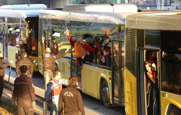 Spor Toto Süper Lig'in 11. haftasında Fenerbahçe ile Galatasaray'ın karşı karşıya geleceği derbi maç öncesi sarı-kırmızılı taraftarlar otobüslerle Kadıköy'e geldi. Deplasman yasağının kalkmasından sonra yaklaşık 6 yıl aradan sonra Kadıköy'de derbi izleyecek sarı-kırmızılı taraftarlar, geniş güvenlik önlemleri altında otobüslerle Ülker Stadı'na ulaştı.