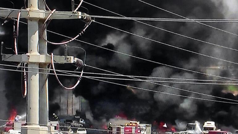 Yangın sırasında otoparktaki bazı araçlarda patlama meydana geldi.
