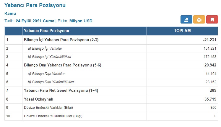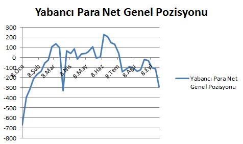 Yabancı para net genel pozisyonu 17 Eylül haftasında 114 milyon dolar ekside olarak açıklanmıştı.