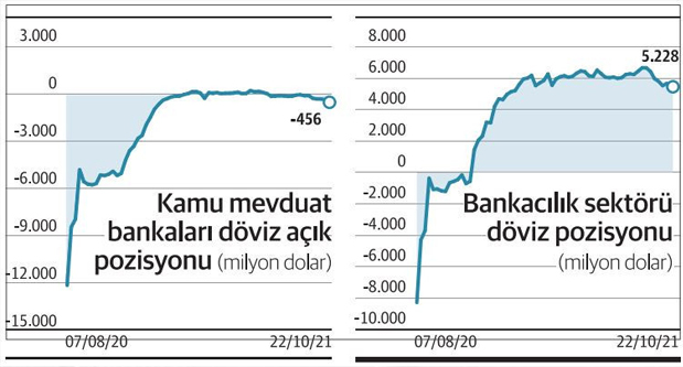 16 Temmuz haftasıyla birlikte yeniden nette döviz açığı veren kamu mevduat bankalarının net açığı ise ekim ayıyla birlikte artışını ivmelendirdi. Dolar/TL'nin de sert hareketlerinin yaşandığı ekim ayı boyunca kamu mevduat bankaları net döviz açığı vermeye devam etti. BDDK, bankaların döviz pozisyon açığının art arda 2 haftadan uzun bir süreyle öz kaynakların yüzde 20'sini aşmasını istemiyor. Bankaların yılda altı defa bu limiti 2 hafta süreyle aşması sıkıntı yaratmıyor.