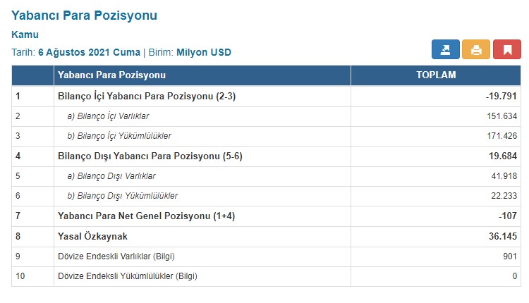 Yabancı para net genel pozisyonu 30 Temmuz haftasında 90 milyon dolar ekside olarak açıklanmıştı.
