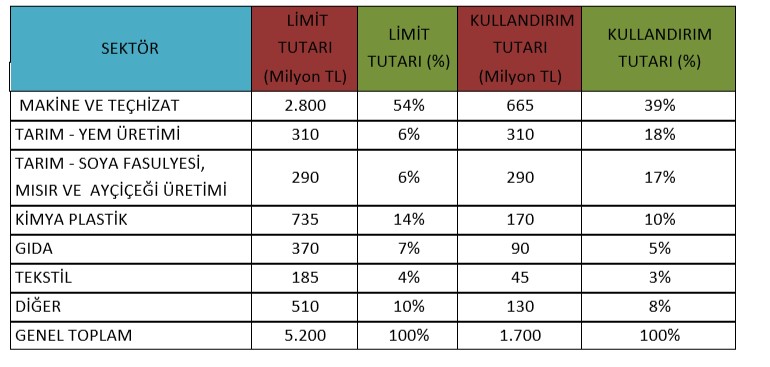 Bu paketle istihdam katkı oranı ve ihracat/döviz geliri potansiyeli yüksek olmasına karşın, ithalat bağımlılığı olduğu için Ülkemizin dış ticaret açığı vermesine sebebiyet veren Sanayi Sektöründe yer alan, hammadde-ara malı üreten, makine imalatı yapan ve yerli makine alımı yapan firmaların yeni yatırımları ve yatırım sonrasında ihtiyaç duyacakları işletme kredileri ile Soya, Ayçiçeği, Mısır ve Yem Üretiminin desteklenmesine yönelik yatırım ve işletme kredileri kullandırılması hedeflenmiştir.