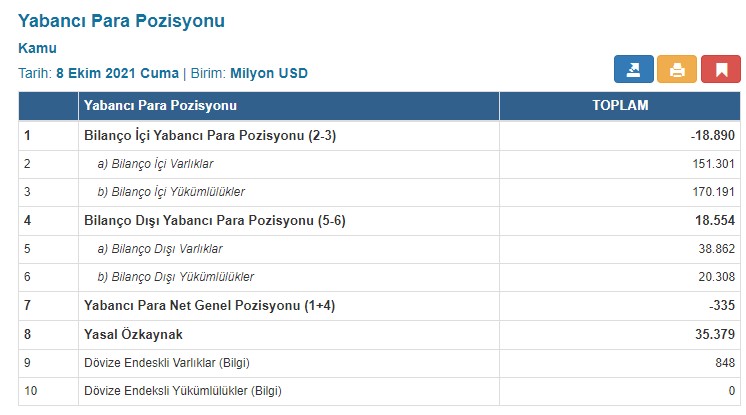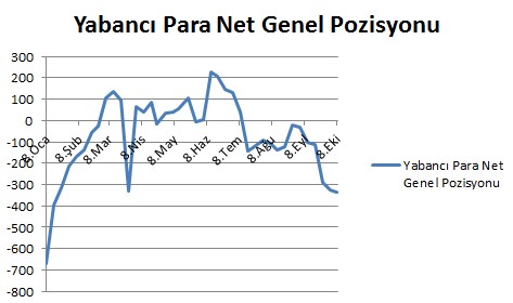 Yabancı para net genel pozisyonu 1 Ekim haftasında 327 milyon dolar ekside olarak açıklanmıştı.