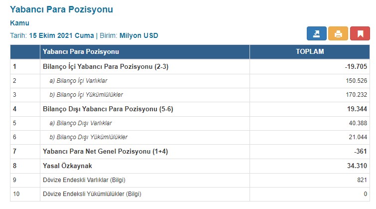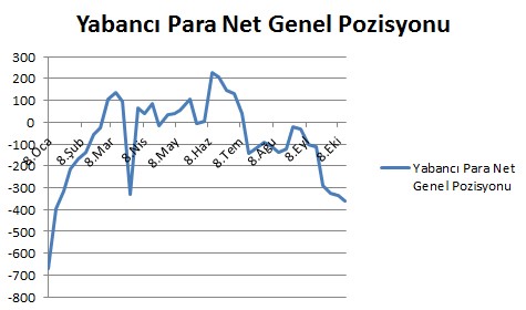 Yabancı para net genel pozisyonu 8 Ekim haftasında 335 milyon dolar ekside olarak açıklanmıştı.