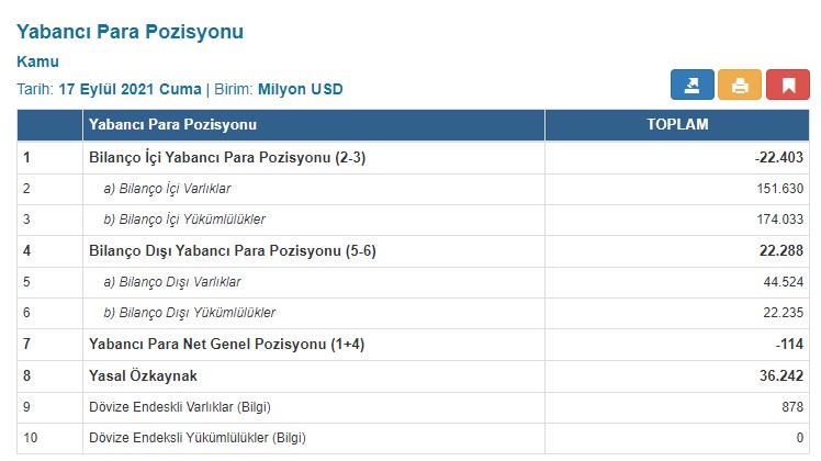 Yabancı para net genel pozisyonu 10 Eylül haftasında 102 milyon dolar ekside olarak açıklanmıştı.