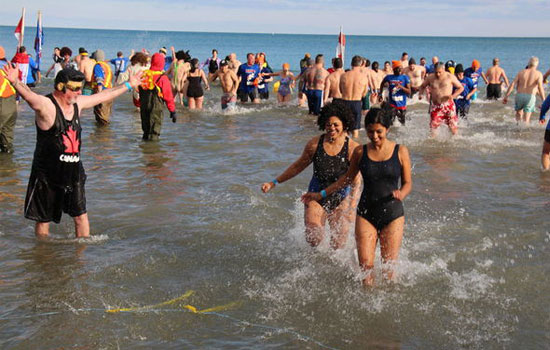 Oakville sahilindeki Coronation Park'ta toplanan 5 bin kişiden 700'ü gruplar halinde göle girdi.