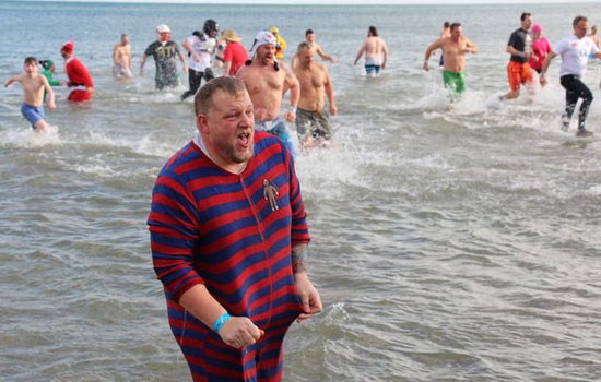 Ülkede kış şartlarının ağır geçtiği Charlottetown ve bazı kıyı kentlerinde de Kanadalılar, kalın buz katmanları kırılarak açıldıktan sonra soğuk sulara daldı.