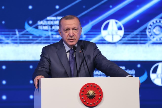 Cumhurbaşkanı Erdoğan, Kanal İstanbul Projesi'ni bundan 11 yıl önce milletle paylaştıklarını hatırlatarak, "Türkiye'nin bu süreçte yaşadığı iç ve dış badireler sebebiyle maalesef projenin ilerlemesi biraz gecikti." diye konuştu.