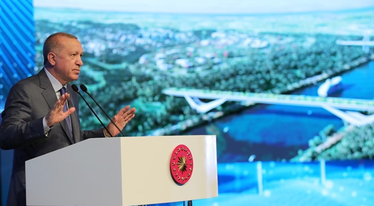 Boğazın gemi geçişlerine kapatılamayacağını ifade eden Erdoğan, artan trafiği karşılamak için yeni bir kanal inşası düşüncesini gündeme getirdiklerini, Kanal İstanbul'a "İstanbul'un geleceğini kurtarma projesi" olarak baktıklarını vurguladı.