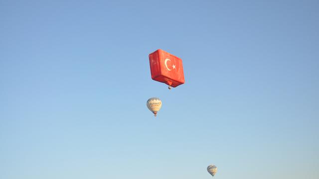 Türk bayrağı figürlü balonuyla havalanan balon pilotu Halis Aydoğan, "30 Ağustos Zafer Bayramı ülkemizde coşkuyla kutlanmaktadır. Dünyada balonculuğun merkezi Kapadokya'da da 30 Ağustos'ta bölgedeki balonlarımız bayraklar ile uçtu. Ayrıca biz de gökyüzündeki coşkuya dünyanın en büyük figürlü bayrak balonuyla katılıyoruz" ifadelerini kullandı.