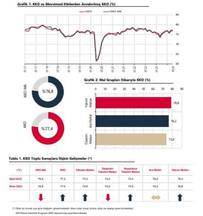 Türkiye Cumhuriyet Merkez Bankası (TCMB) tarafından yapılan açıklamaya göre, mevsimsel etkilerden arındırılmamış Kapasite Kullanım Oranı (KKO), bir önceki aya göre 0,1 puan artarak yüzde 77,4 seviyesinde gerçekleşti.